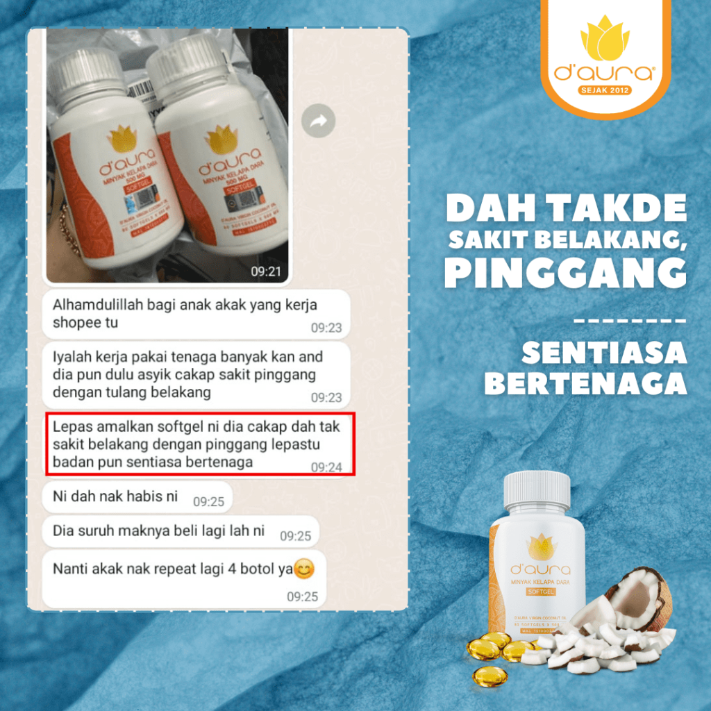 TESTIMONI BERJAYA SELEPAS AMALKAN MINYAK KELAPA DARA SOFTGEL